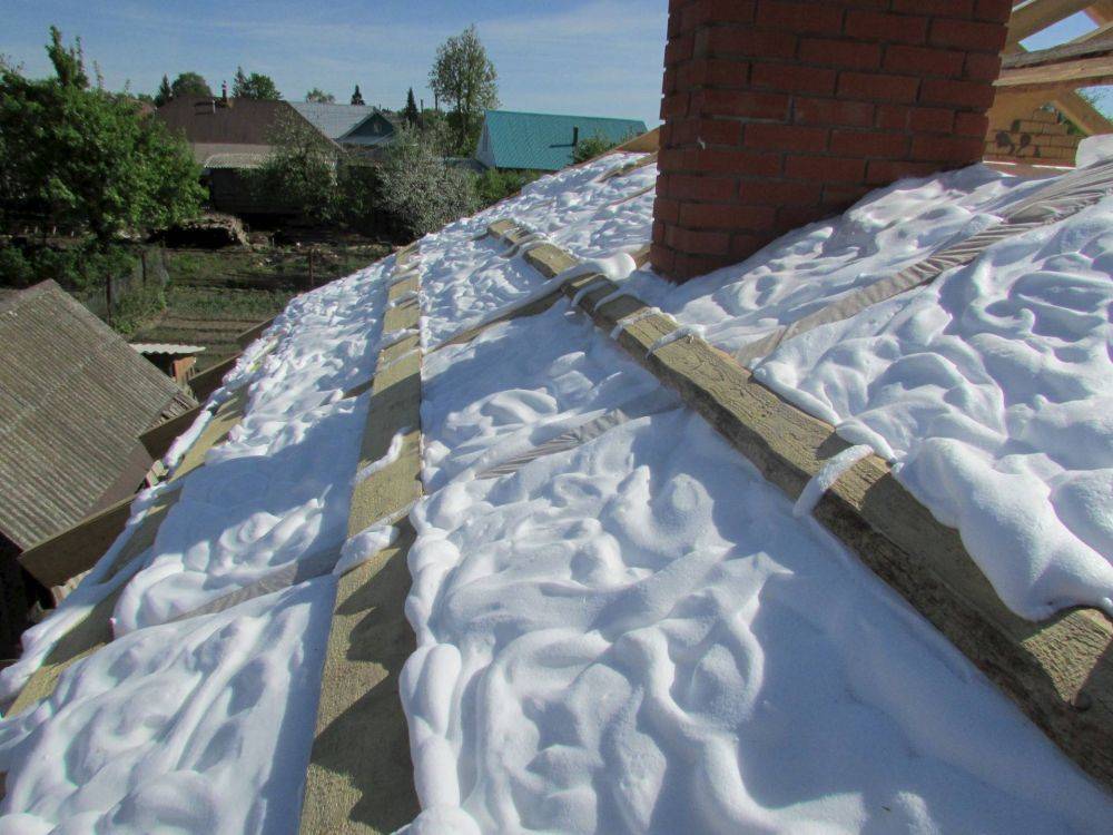 Жидким пенопластом успешно утепляют, перекрывают чердачные перекрытия, наклонные плоскости. Им достаточно эффективно утепляются емкости, установленные на небольшом расстоянии от здания.